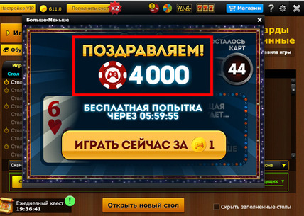 Тогда Вы получите процент от всех поставленных фишек за столами в выбранной комнате. На 1 поставленный золотой вы можете получить до 50 000 фишек.