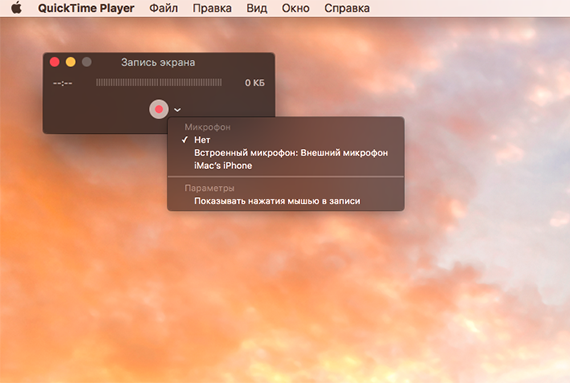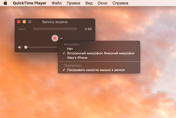 Для начала записи можно использовать сочетание клавиш Command+Control+N или же просто выбрать соответствующий пункт в панели меню:
